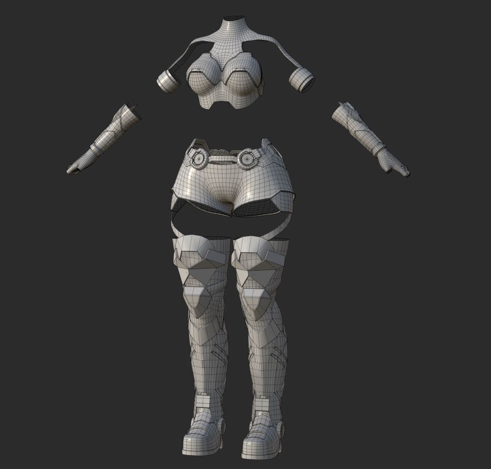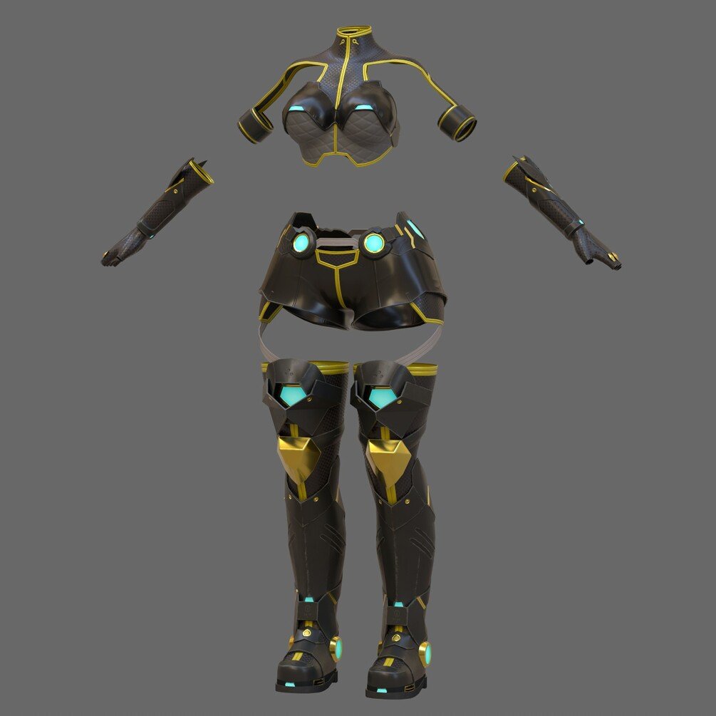 Phantasy Star Online Suit PBR with rig and weights for use with Panda Female Base.