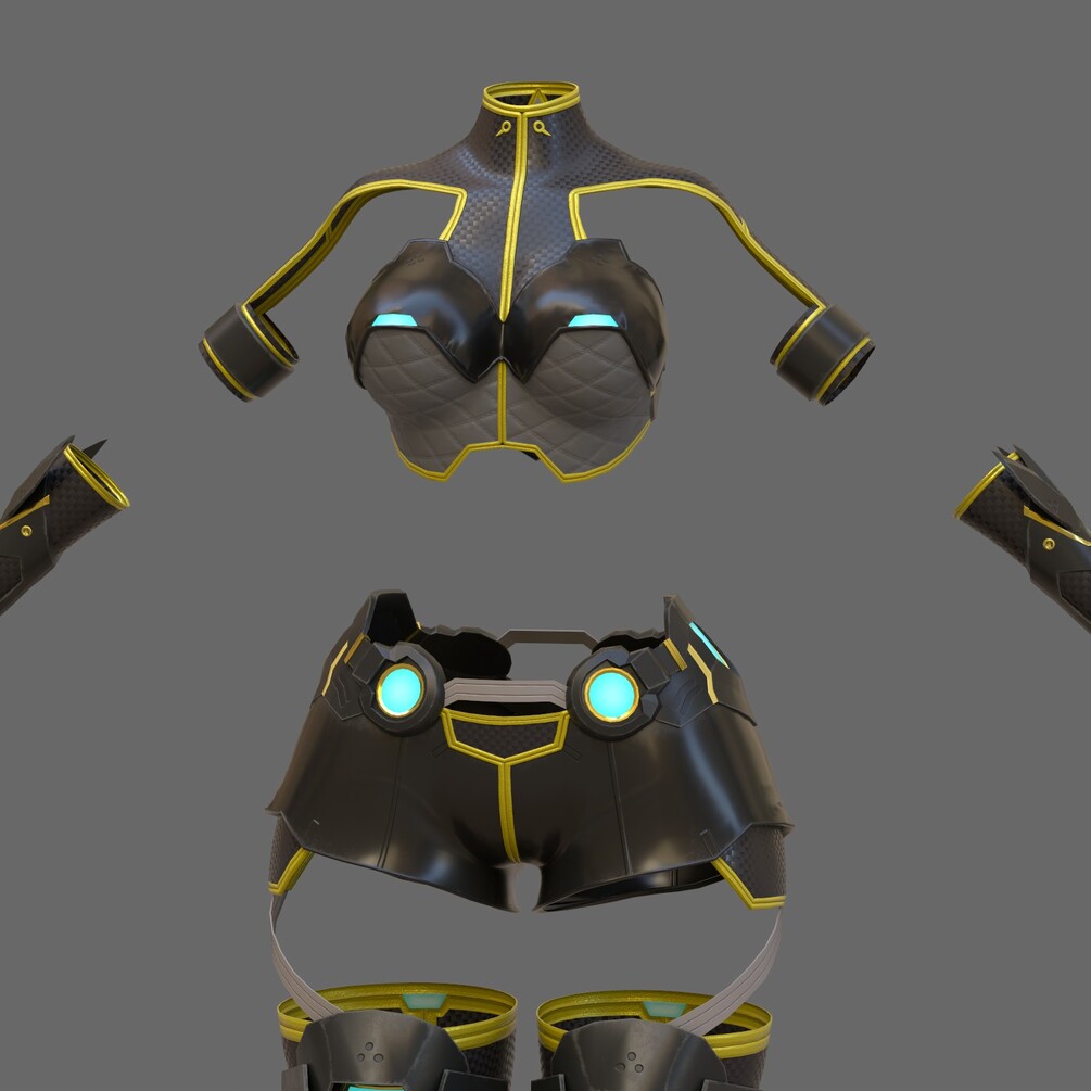 Phantasy Star Online Suit PBR with rig and weights for use with Panda Female Base.